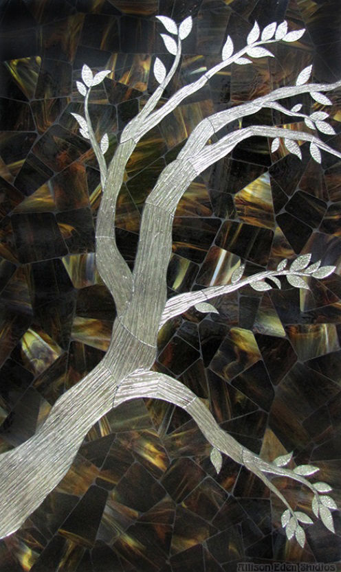 Silver Mirror Bark Tree on chocolate brown mosaic (36" X 60")